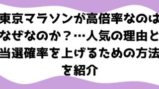 大会紹介 東京マラソンが高倍率なのはなぜなのか?…人気の理由と当選確率を上げるための方法を紹介 国内のマラソン大会の中で最大の規模を誇る東京マラソン。SNSやテレビでも毎年取り上げられているので、名前は知っているけどなにがすごくてそんなに人気なのかいまいちわからない方も多いと思います。そんな東京マラソンの応募倍率は、なんと例年約10~... 2025.12.11 大会紹介